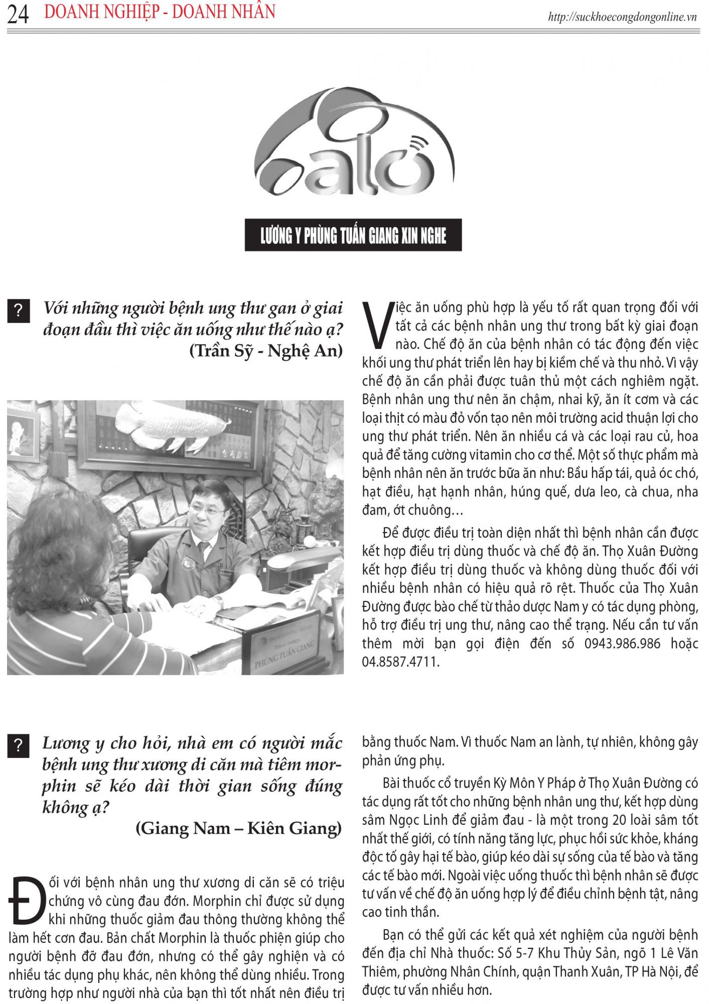 CHUYÊN MỤC "ALO LƯƠNG Y PHÙNG TUẤN GIANG XIN NGHE"