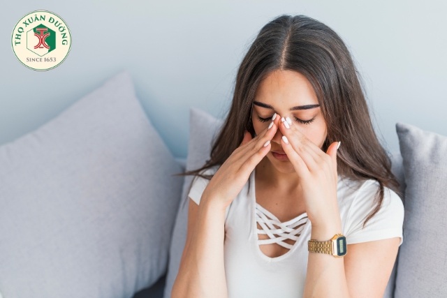 - Đau hoặc nặng mặt, nhức đầu: Cảm giác đau âm ỉ vùng trán, quanh hốc mắt, hai bên má, hoặc sau gáy – tương ứng với vị trí xoang bị viêm (xoang trán, xoang hàm, xoang sàng, xoang bướm). Đau tăng khi cúi đầu, ho, hắt hơi, hoặc buổi sáng sớm.