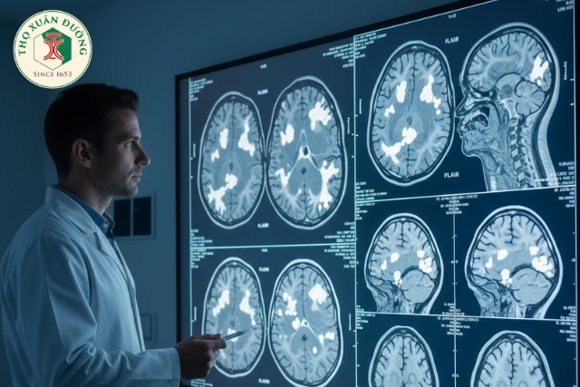 Về điều trị PML IRIS, tình trạng thần kinh được cải thiện khi ngừng liệu pháp ART. Một số nghiên cứu đã chỉ ra kết quả khả quan khi điều trị bằng steroid. Tuy nhiên, việc ngừng liệu pháp kháng vi-rút có thể làm tăng tải lượng vi-rút và dẫn đến kháng thuốc kháng vi-rút. PML IRIS có nguy cơ đáng kể về hiệu ứng khối và thoát vị, do đó có thể sử dụng glucocorticoid trong trường hợp có các biến chứng như vậy để chống lại tổn thương do tái tạo miễn dịch gây ra. Đi tới: Chẩn đoán phân biệt Khi xem xét các chẩn đoán phân biệt đối với đánh giá thần kinh bất thường ở bệnh nhân suy giảm miễn dịch, các khả năng bao gồm viêm não do toxoplasma, u lympho CNS nguyên phát, PML, bệnh não HIV và viêm não CMV. Theo quan điểm lâm sàng, PML có thể biểu hiện dưới dạng các khiếm khuyết thần kinh khu trú ở các thông số cảm giác, vận động hoặc thị giác. Do đó, biểu hiện này tương tự như biểu hiện của Toxoplasma và u lympho CNS nguyên phát và cần phân biệt bằng các phương tiện X quang. Mặc dù biểu hiện giống với PML, nhưng về mặt X quang, PML không đối xứng, phân định rõ và không tăng cường độ tương phản mà không có hiệu ứng khối, trong khi cả Toxoplasma và PCNL đều biểu hiện dưới dạng tổn thương tăng cường độ tương phản. Hơn nữa, xét nghiệm dịch não tủy trong trường hợp PCNL có thể cho kết quả dương tính với vi-rút Epstein Barr. Tổn thương không tăng cường độ tương phản được thấy trong bệnh PML, viêm não CMV và bệnh não HIV. Do đó, cần phân biệt các tình trạng này với nhau. Bệnh não do HIV thường biểu hiện dưới dạng khiếm khuyết về nhận thức và không biểu hiện dấu hiệu của khiếm khuyết thần kinh khu trú. Hơn nữa, đánh giá về mặt X quang sẽ cho thấy các tổn thương đối xứng, ranh giới không rõ ràng. Bệnh não do HIV cũng sẽ cho thấy bằng chứng về tải lượng vi-rút HIV dương tính khi xét nghiệm dịch não tủy. Viêm não CMV là một chẩn đoán phân biệt cần được xem xét. Biểu hiện của nó giống với PML và các tổn thương không tăng cường độ tương phản được ghi nhận trên MRI. Tuy nhiên, hình ảnh chụp X quang khác với PML. Chụp MRI cho thấy các vi hạt khuếch tán đa ổ ở vỏ não, hạch nền, thân não và tiểu não.