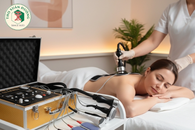 - Kết hợp thủ thuật Đông y như giác hơi, cạo gió, xoa bóp kinh lạc, giúp dòng điện dẫn truyền hiệu quả hơn.
