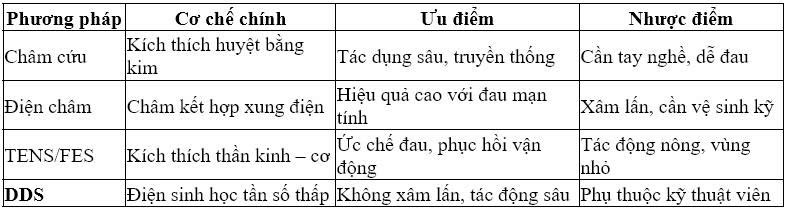 Dòng điện từ máy DDS có thể thấm sâu vào các tầng cơ, mô liên kết, hệ thần kinh ngoại biên, từ đó kích hoạt quá trình hồi phục tự nhiên của cơ thể. Thiết bị này không sử dụng thuốc, không xâm lấn, rất phù hợp với xu hướng điều trị phục hồi chức năng tự nhiên, toàn diện.