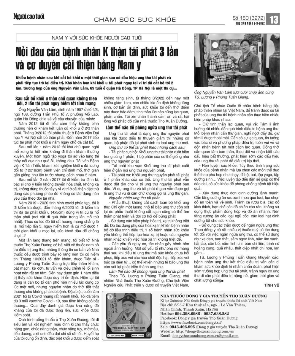 Bài đăng Tạp chí Người cao tuổi số 180 ngày 09/09/2022