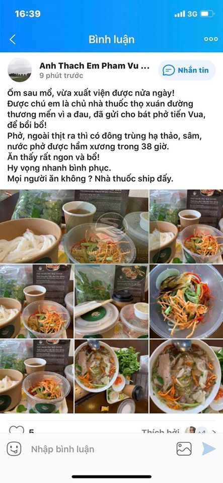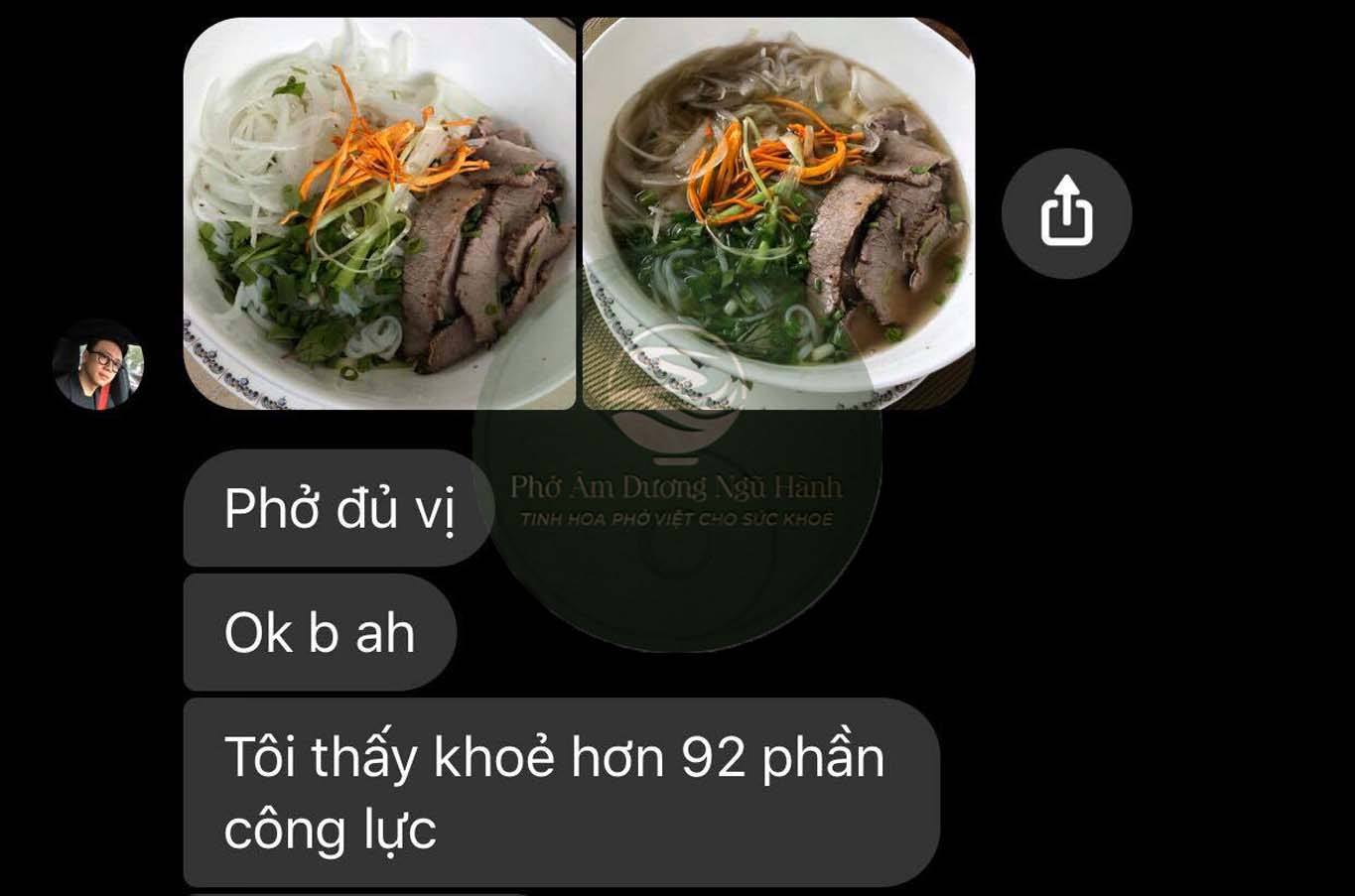 "Tôi gọi một suất đặc biệt vì nghĩ cái tên đã vô cùng đặc biệt rồi, mà ăn thì đúng là ngon thật. Vị chuẩn phở với các hương liệu dậy mùi thơm hồi quế, đinh hương, ngọt, thanh, lại có thêm đông trùng hạ thảo và sâm nữa, nó quá đặc biệt”, anh Hoàng Thanh bình luận trên Facebook.