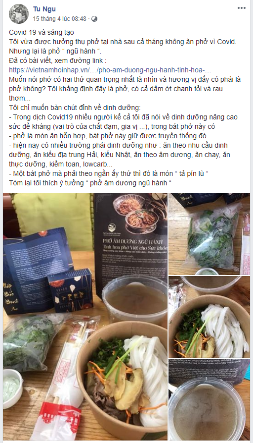 Còn chị Hồng Mai (quận Cầu Giấy) cho biết, những ngày giãn cách xã hội ở nhà mặc dù chăm chút nấu ăn cho gia đình nhưng khi nhận được Phở âm dương ngũ hành chị không ngừng bất ngờ về sự độc – lạ mà phở âm dương ngũ hành mang lại. Vốn dĩ bụng dạ chị không được tốt nhưng dùng phở này tuyệt nhiên hệ tiêu hóa của chị không bị ảnh hưởng gì mà lại cực dễ chịu.