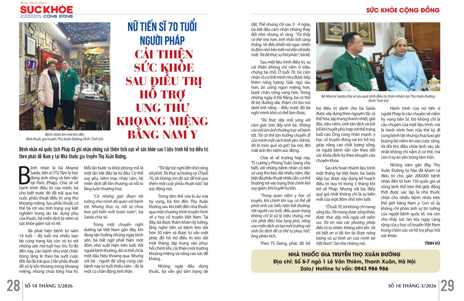 Trong tâm thế vừa lo âu vừa hy vọng, bà tìm đến Thọ Xuân Đường sau khi biết đến nhà thuốc qua một chương trình truyền hình về y học cổ truyền Việt Nam. Tại đây, bà được thăm khám kỹ lưỡng, lắng nghe tiền sử bệnh kéo dài hơn 50 năm và được tư vấn một phác đồ điều trị hỗ trợ kéo dài một tháng, tập trung vào phục hồi chính khí, cải thiện môi trường khoang miệng và nâng cao sức đề kháng.