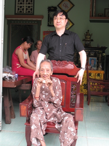 Lương y – Tiến sĩ Phùng Tuấn Giang thăm hỏi, khám sức khỏe cho cụ bà Nguyễn Thị Trù – người cao tuổi nhất thế giới